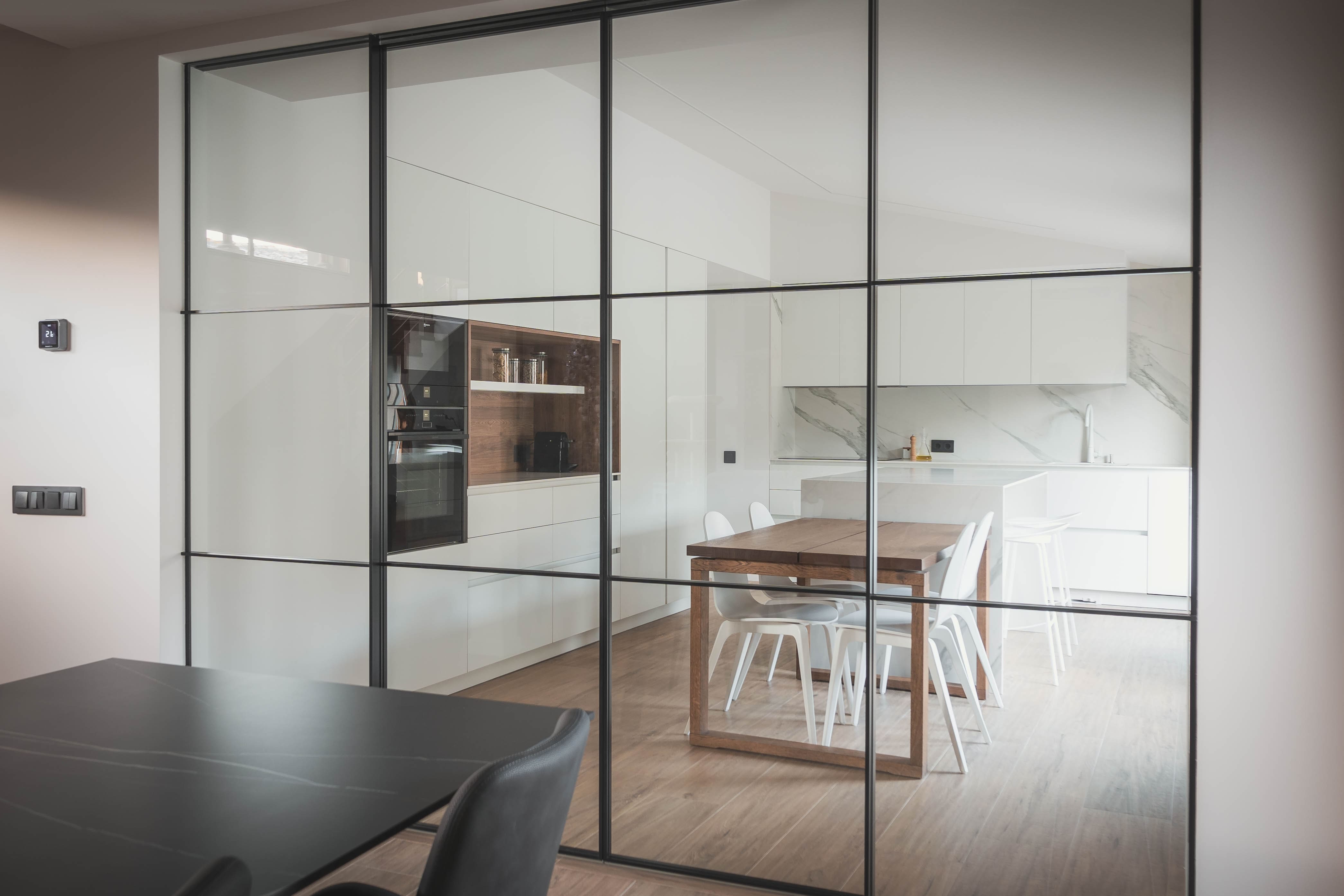 Això no vol dir eliminar totes les separacions, sinó trobar solucions que permetin modular l’espai: portes corredisses, separadors lleugers, mobles que delimiten zones o elements que es poden obrir i tancar segons el moment.