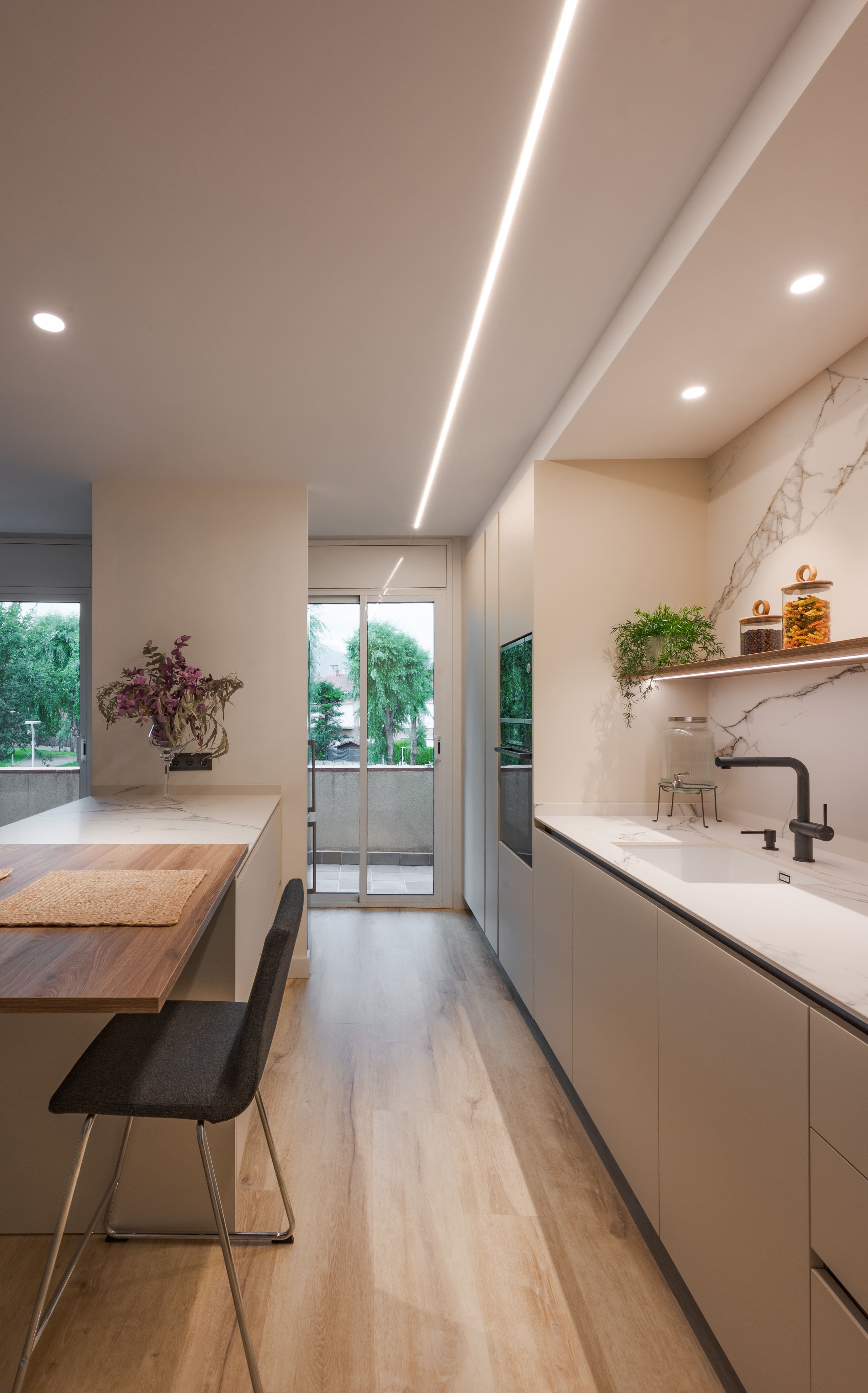 Treballar aquests espais amb mobles a mida, electrodomèstics integrats i una distribució eficient pot marcar una gran diferència. També hi afegim detalls estètics que aportin calidesa: rajoles amb textura, aixetes especials, colors cuidats.