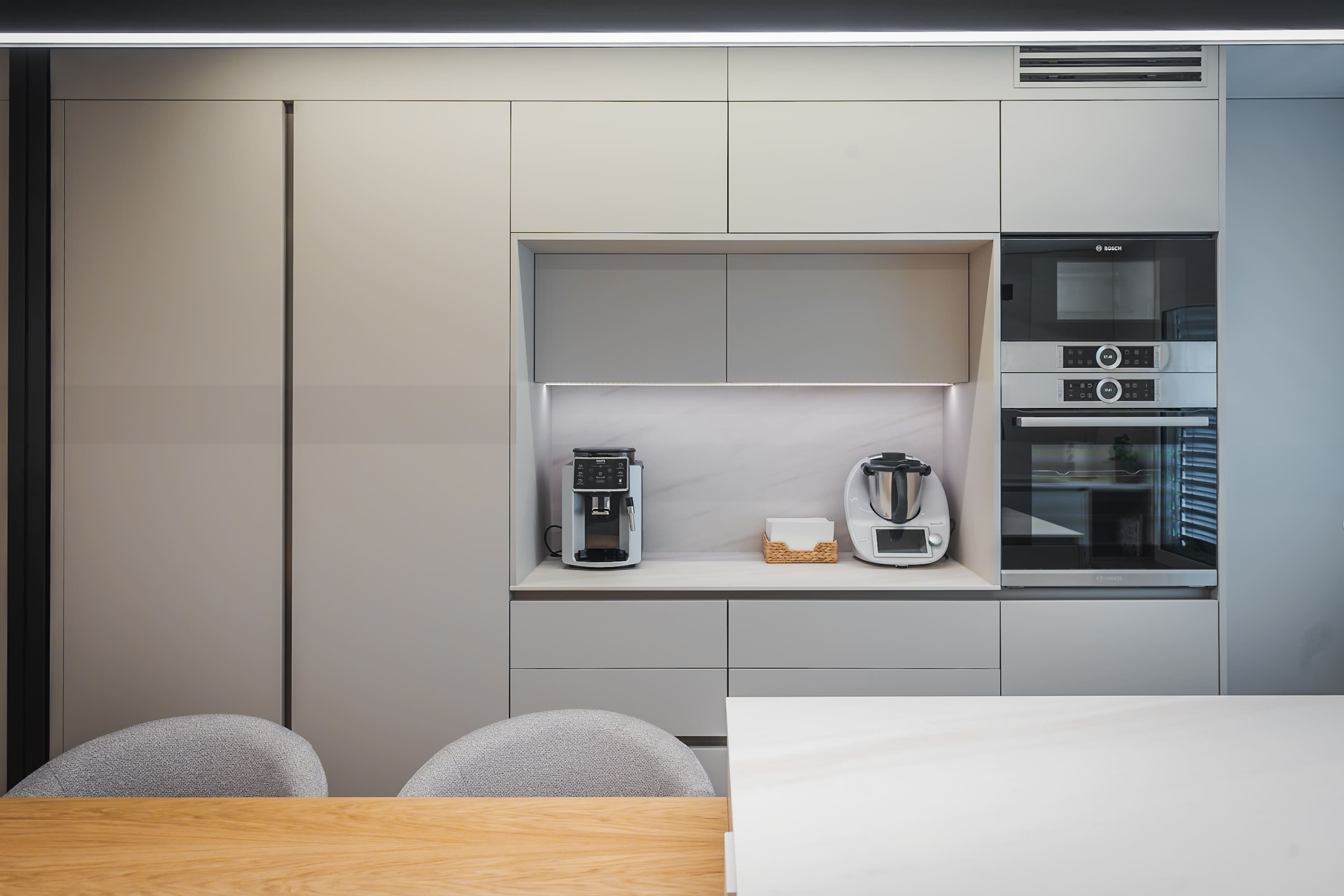 A La Mimètica entenem la cuina com un dels espais més vius de la casa. Per això, a l’hora de dissenyar-la, busquem integrar la tecnologia d’una manera natural, pensant tant en l’ús del dia a dia com en l’harmonia del conjunt.